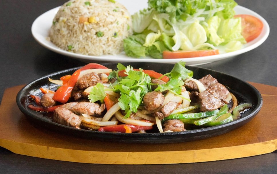 Tender, marinated beef cubes stir-fried to perfection and served with steamed rice and fresh vegetables.