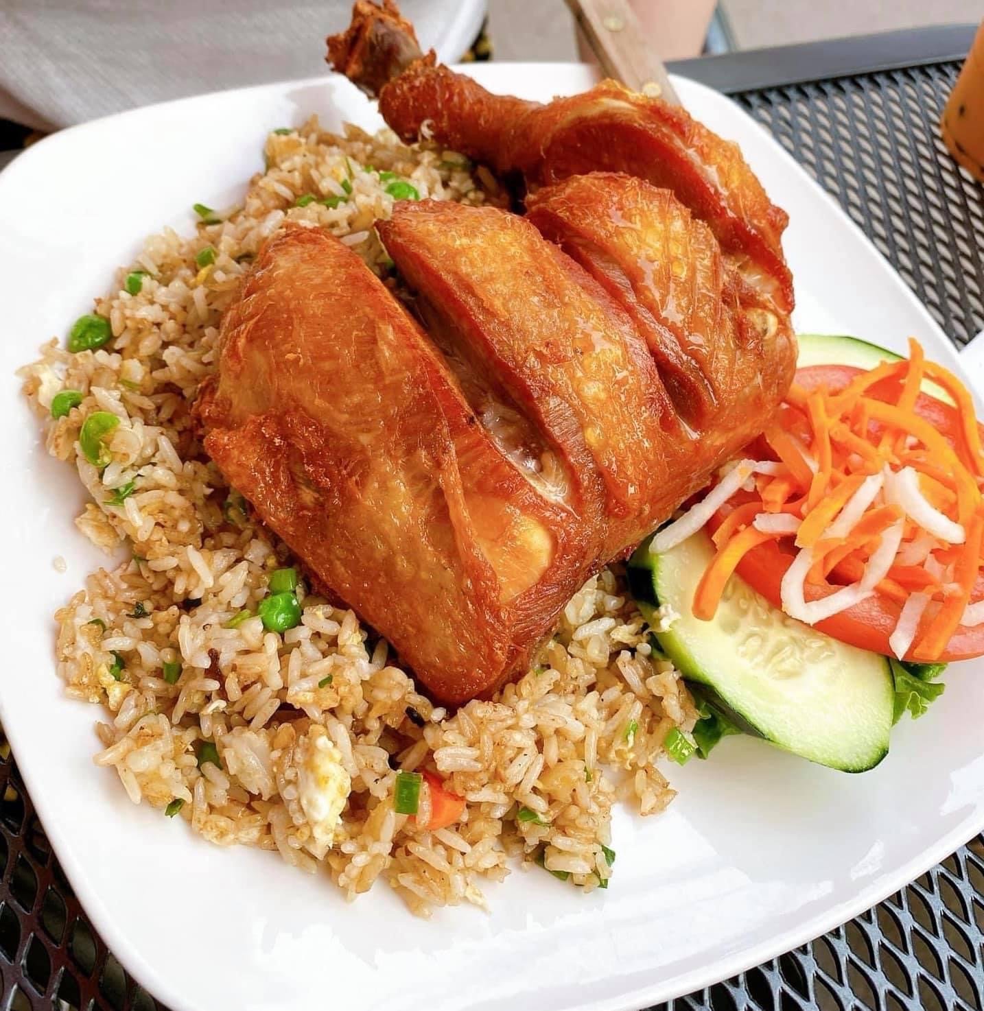 Crispy, flavorful chicken served with steamed rice and savory Vietnamese-style sauce.